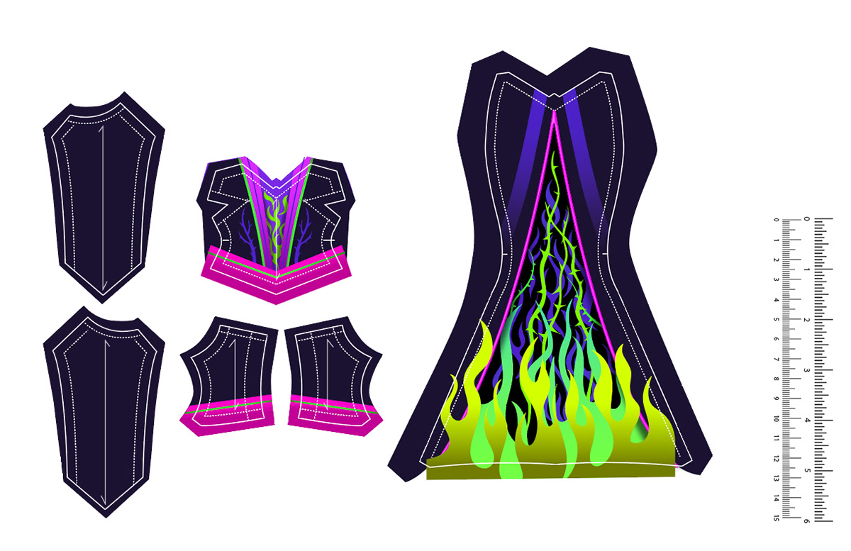 I got to work my fashion skills and illustrate, vector, and help design these patterns for Hasbro's Disney Villains Black and Brights doll line. So much fun! “Even the bad can look good! Client: Hasbro